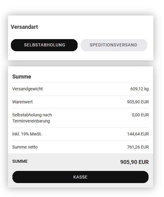 Der Kunde muß sich erst registrieren oder eventuell in einer (falls vorhanden) Liste seine Postleitzahl und das Gewicht suchen und dadurch die endgültigen Versandkosten herauslesen.